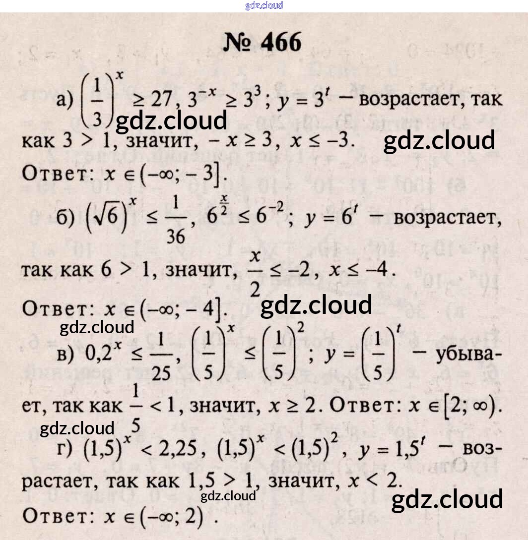 Ответ на задание 466 Учебник Алгебра за 10, 11 (десятый, одиннадцатый) класс Колмогоров, Абрамов, Дудницын, Ивлев, Шварцбурд 2008