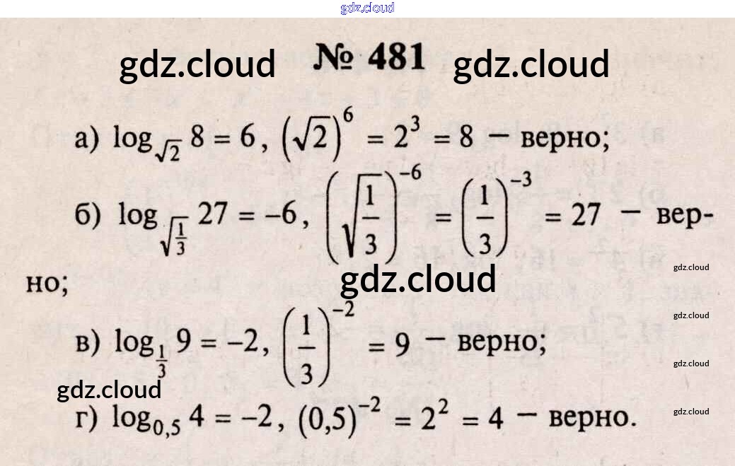 Ответ на задание 481 Учебник Алгебра за 10, 11 (десятый, одиннадцатый) класс Колмогоров, Абрамов, Дудницын, Ивлев, Шварцбурд 2008
