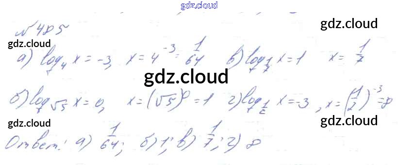 Ответ на задание 485 Учебник Алгебра за 10, 11 (десятый, одиннадцатый) класс Колмогоров, Абрамов, Дудницын, Ивлев, Шварцбурд 2008