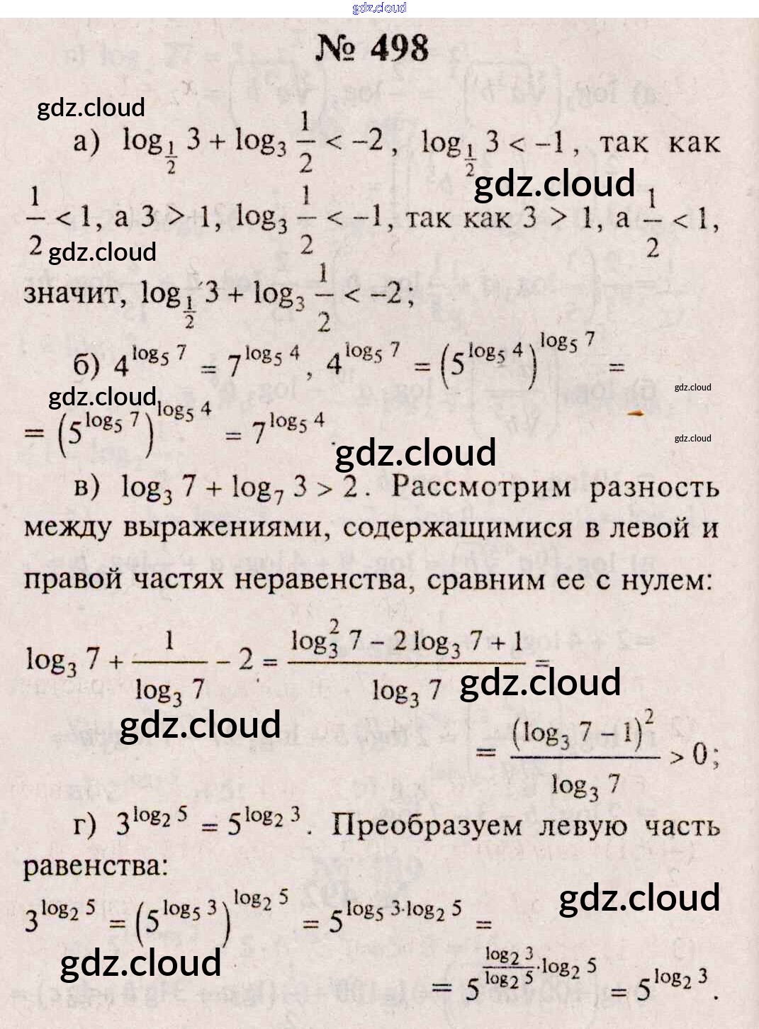 Ответ на задание 498 Учебник Алгебра за 10, 11 (десятый, одиннадцатый) класс Колмогоров, Абрамов, Дудницын, Ивлев, Шварцбурд 2008