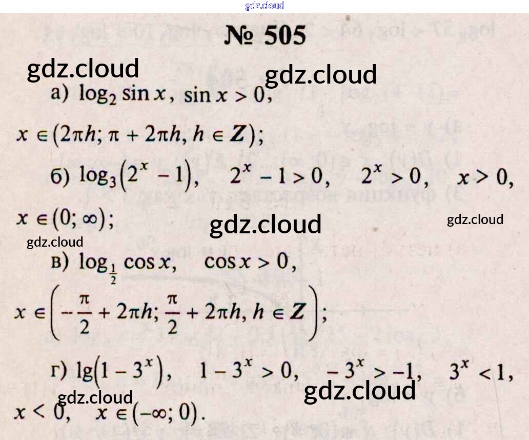 Ответ на задание 505 Учебник Алгебра за 10, 11 (десятый, одиннадцатый) класс Колмогоров, Абрамов, Дудницын, Ивлев, Шварцбурд 2008