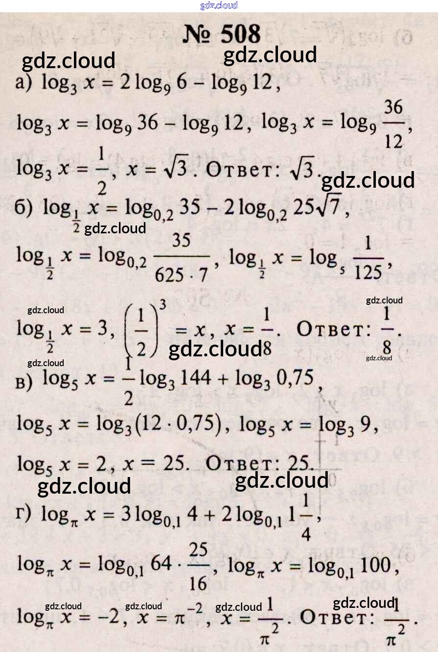 Ответ на задание 508 Учебник Алгебра за 10, 11 (десятый, одиннадцатый) класс Колмогоров, Абрамов, Дудницын, Ивлев, Шварцбурд 2008
