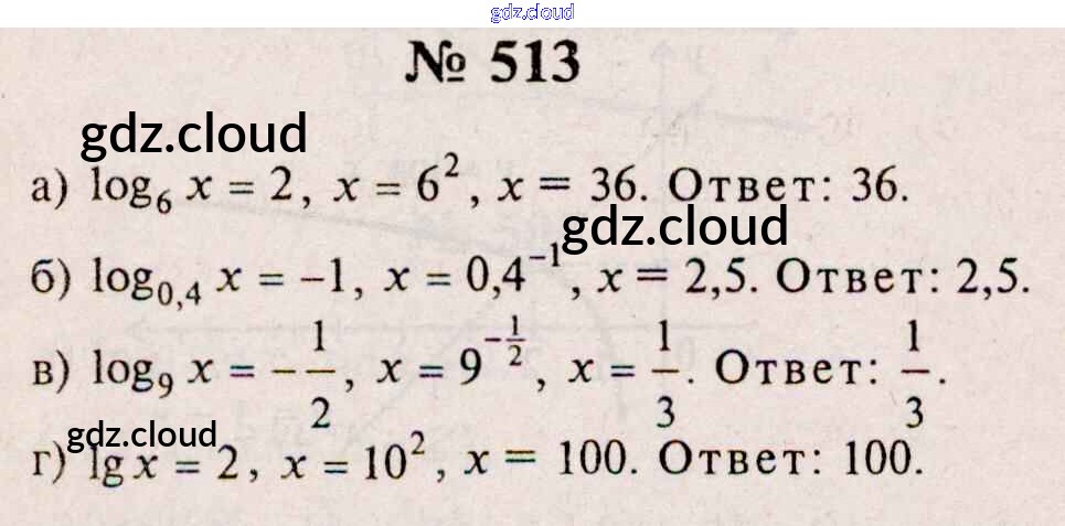 Ответ на задание 513 Учебник Алгебра за 10, 11 (десятый, одиннадцатый) класс Колмогоров, Абрамов, Дудницын, Ивлев, Шварцбурд 2008