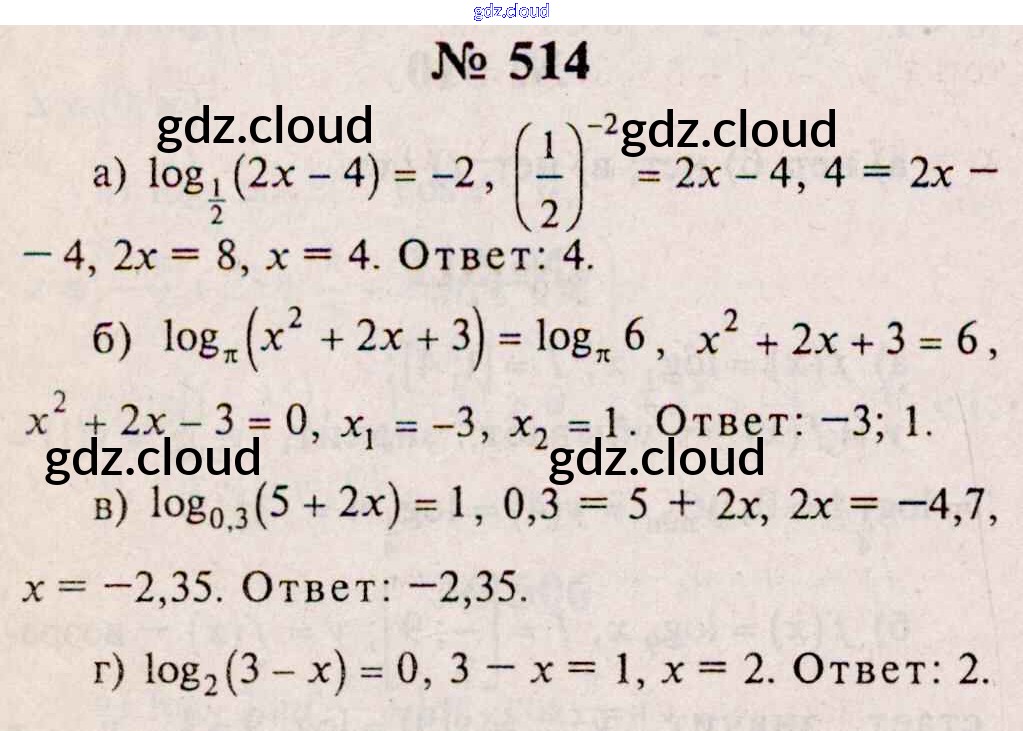 Ответ на задание 514 Учебник Алгебра за 10, 11 (десятый, одиннадцатый) класс Колмогоров, Абрамов, Дудницын, Ивлев, Шварцбурд 2008