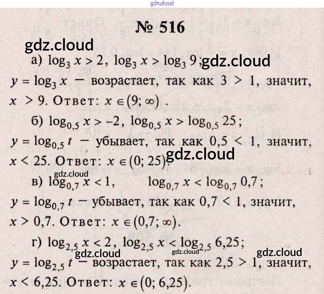 Ответ на задание 516 Учебник Алгебра за 10, 11 (десятый, одиннадцатый) класс Колмогоров, Абрамов, Дудницын, Ивлев, Шварцбурд 2008