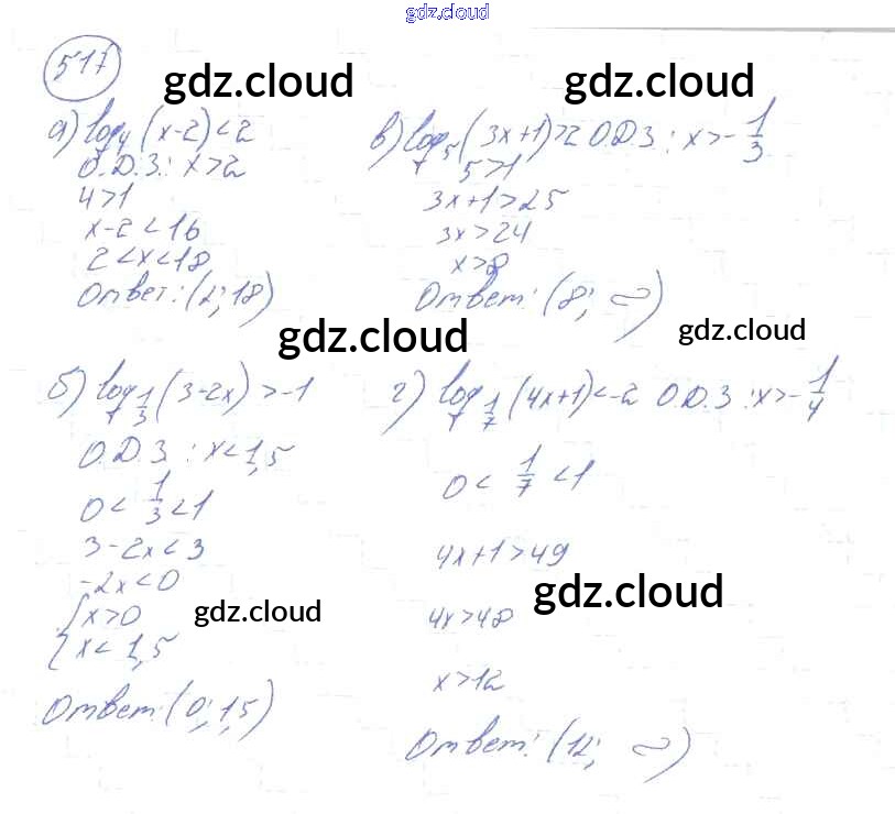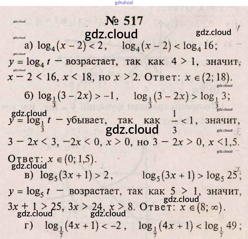 Ответ на задание 517 Учебник Алгебра за 10, 11 (десятый, одиннадцатый) класс Колмогоров, Абрамов, Дудницын, Ивлев, Шварцбурд 2008