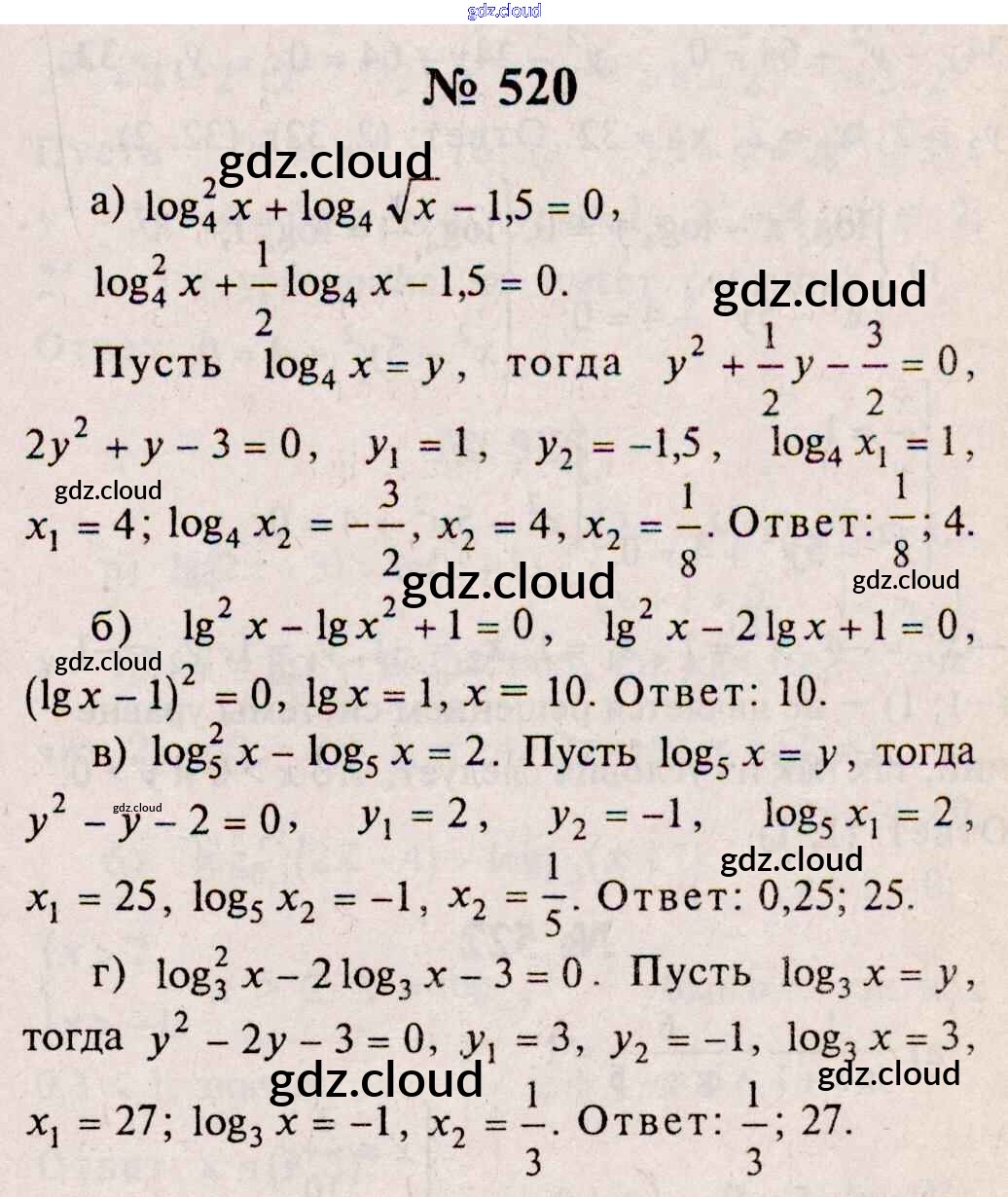 Ответ на задание 520 Учебник Алгебра за 10, 11 (десятый, одиннадцатый) класс Колмогоров, Абрамов, Дудницын, Ивлев, Шварцбурд 2008