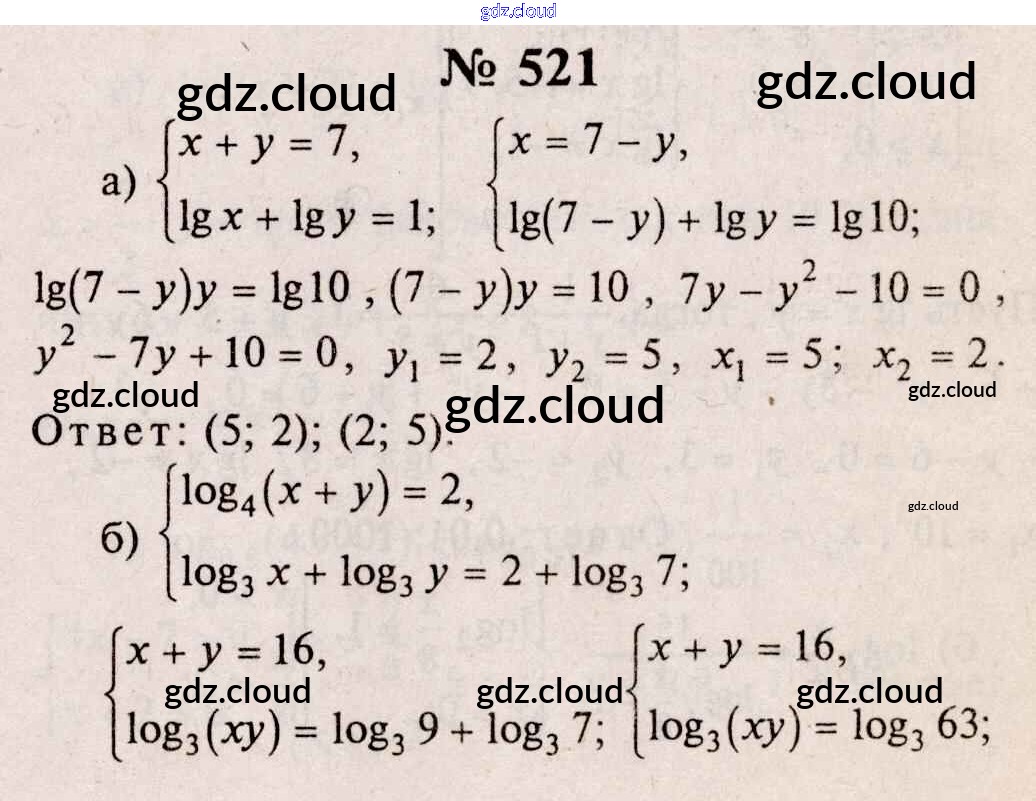 Ответ на задание 521 Учебник Алгебра за 10, 11 (десятый, одиннадцатый) класс Колмогоров, Абрамов, Дудницын, Ивлев, Шварцбурд 2008