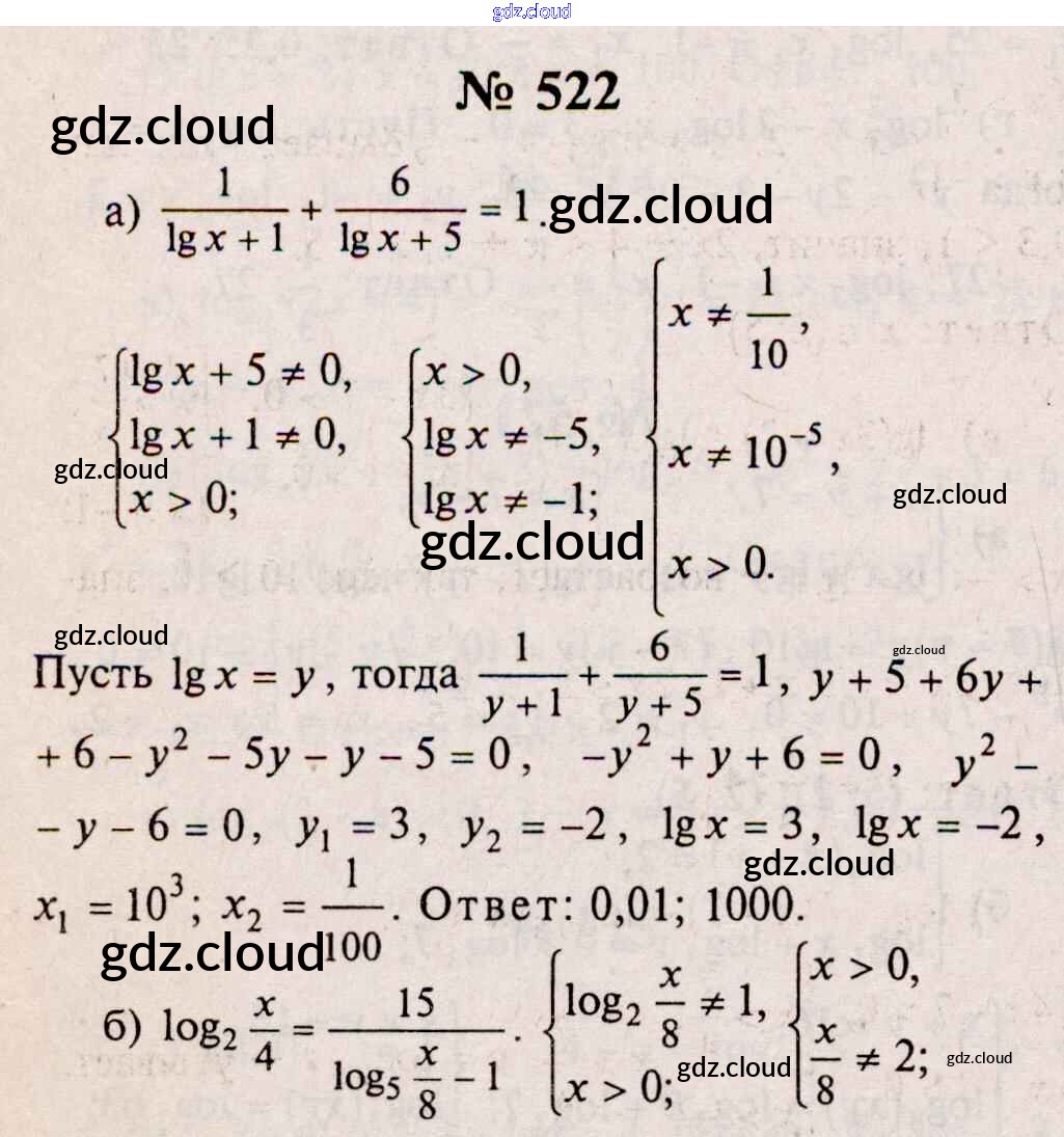 Ответ на задание 522 Учебник Алгебра за 10, 11 (десятый, одиннадцатый) класс Колмогоров, Абрамов, Дудницын, Ивлев, Шварцбурд 2008