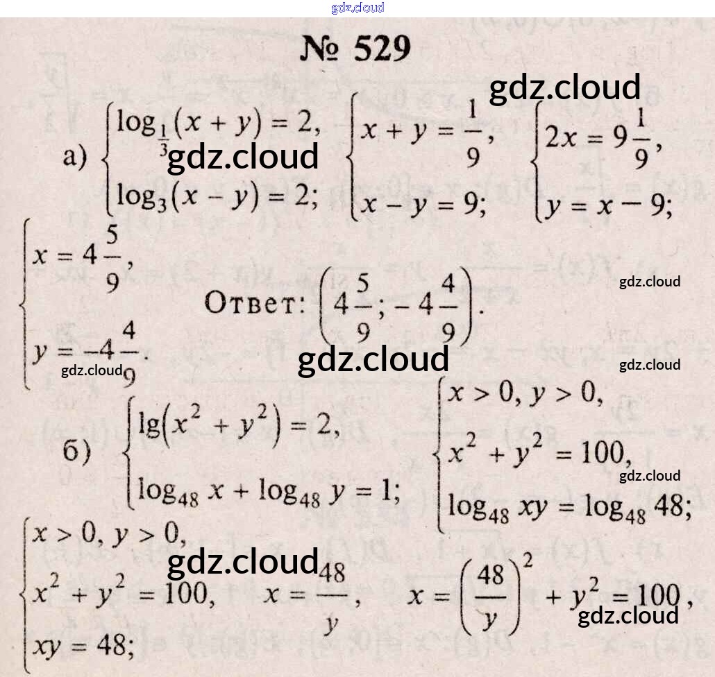 Ответ на задание 529 Учебник Алгебра за 10, 11 (десятый, одиннадцатый) класс Колмогоров, Абрамов, Дудницын, Ивлев, Шварцбурд 2008