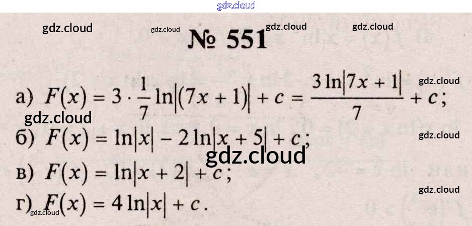 Ответ на задание 551 Учебник Алгебра за 10, 11 (десятый, одиннадцатый) класс Колмогоров, Абрамов, Дудницын, Ивлев, Шварцбурд 2008