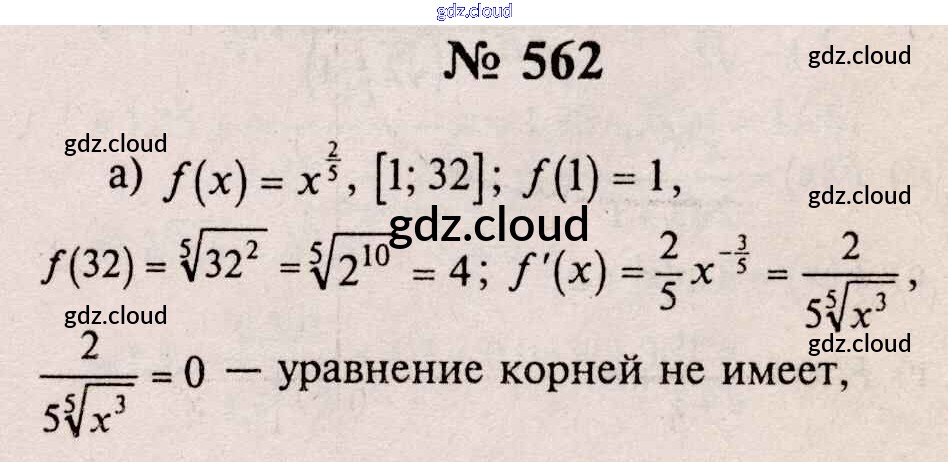 Ответ на задание 562 Учебник Алгебра за 10, 11 (десятый, одиннадцатый) класс Колмогоров, Абрамов, Дудницын, Ивлев, Шварцбурд 2008