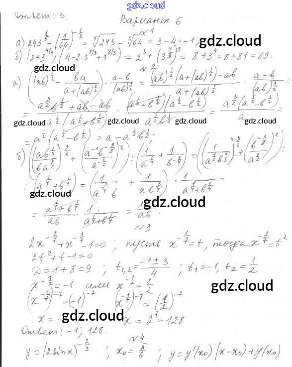 Ответ на задание Вариант-6 Контрольные работы Алгебра за 11 (одиннадцатый) класс Глизбург Базовый и углубленный уровень 2016