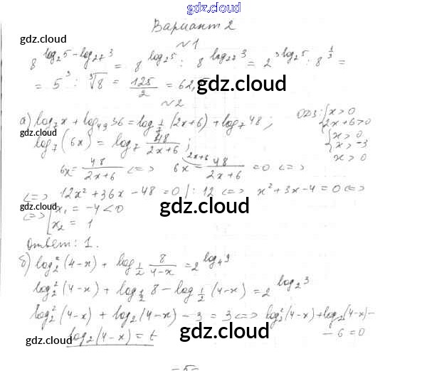 Ответ на задание Вариант-2 Контрольные работы Алгебра за 11 (одиннадцатый) класс Глизбург Базовый и углубленный уровень 2016