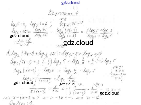 Ответ на задание Вариант-4 Контрольные работы Алгебра за 11 (одиннадцатый) класс Глизбург Базовый и углубленный уровень 2016