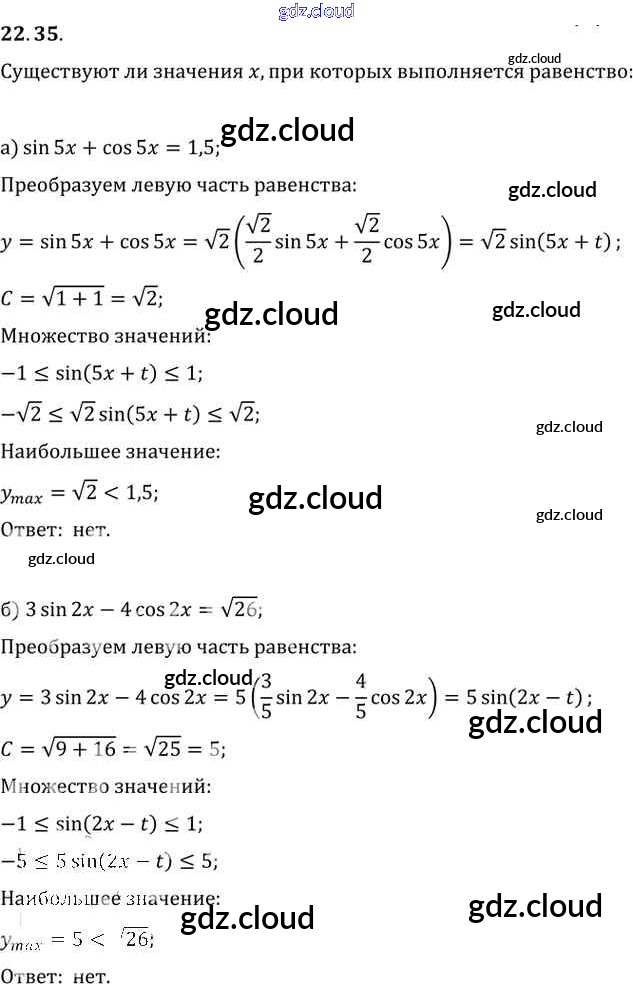 Ответ на задание 22.35 Задачник Алгебра за 10, 11 (десятый, одиннадцатый) класс Мордкович, Денищева, Корешкова, Мишустина, Семёнов, Тульчинская Базовый уровень 2015 Часть 2