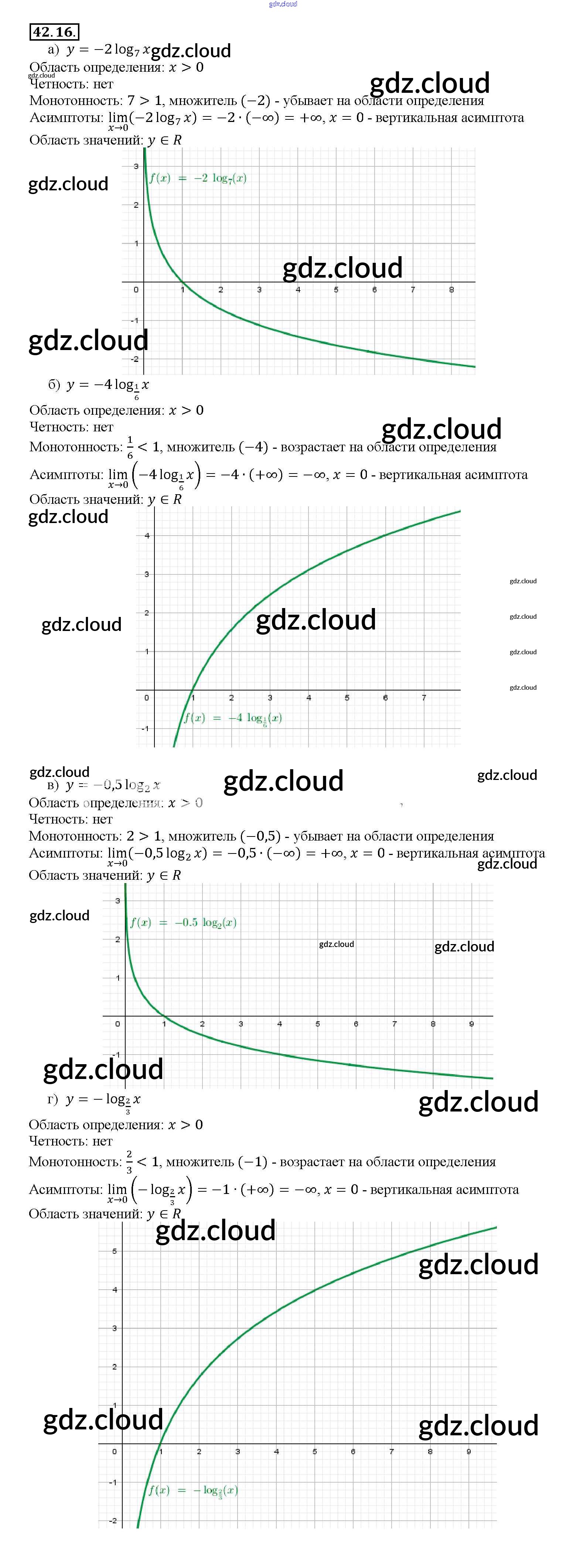 §42. Функция y = loga x, ее свойства и график Глава 7 по Алгебре 10, 11 класс Задачник Мордкович Базовый уровень Часть 2 Мнемозина