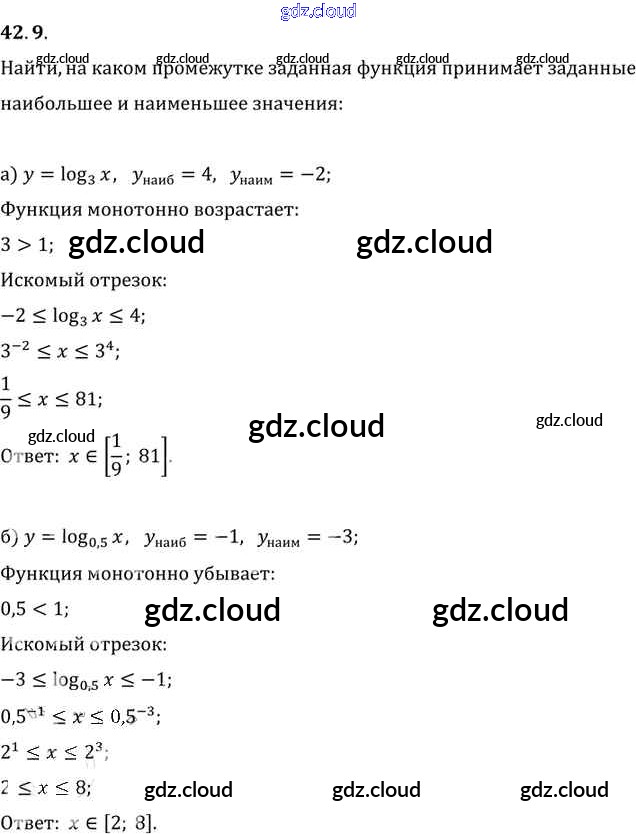 §42. Функция y = loga x, ее свойства и график Глава 7 по Алгебре 10, 11 класс Задачник Мордкович Базовый уровень Часть 2 Мнемозина