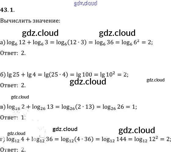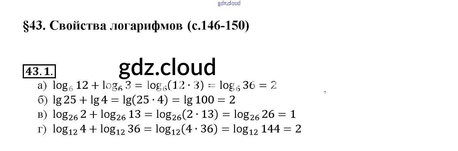 §43. Свойства логарифмов Глава 7 по Алгебре 10, 11 класс Задачник Мордкович Базовый уровень Часть 2 Мнемозина