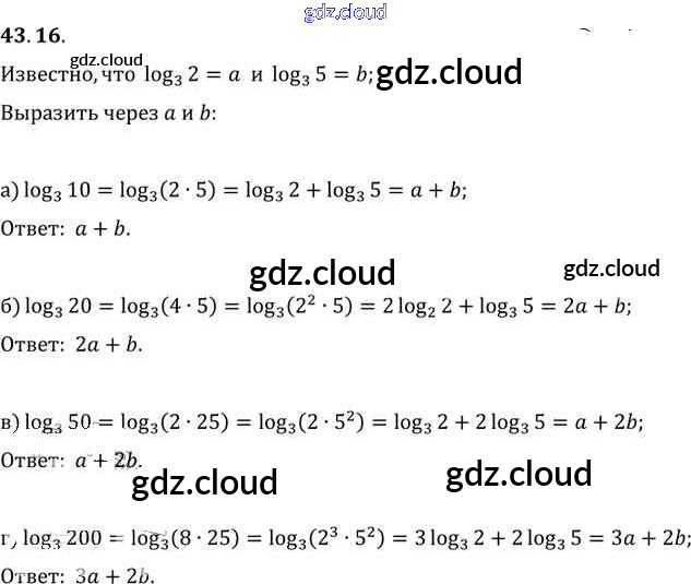 §43. Свойства логарифмов Глава 7 по Алгебре 10, 11 класс Задачник Мордкович Базовый уровень Часть 2 Мнемозина