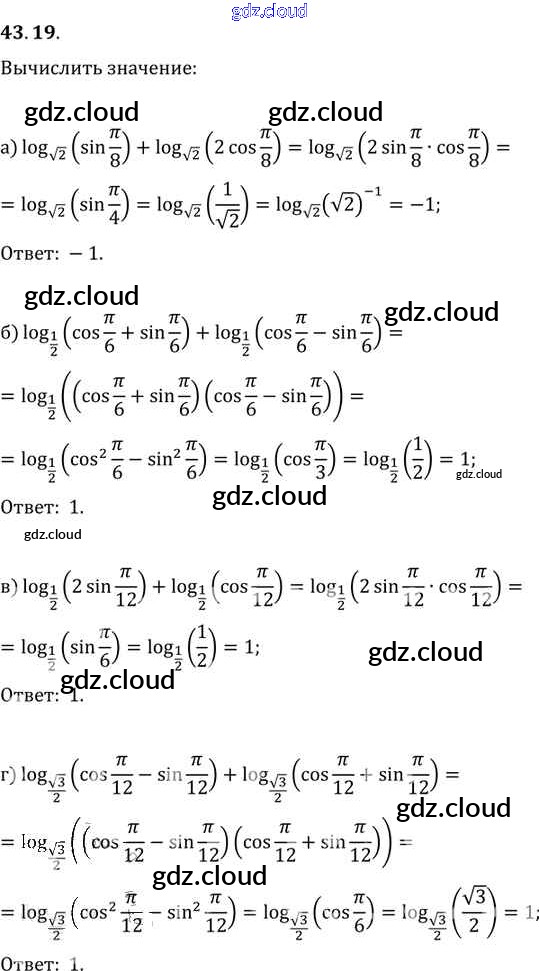 Ответ на задание 43. 19 Задачник Алгебра за 10, 11 (десятый, одиннадцатый) класс Мордкович, Денищева, Корешкова, Мишустина, Семёнов, Тульчинская Базовый уровень 2015 Часть 2
