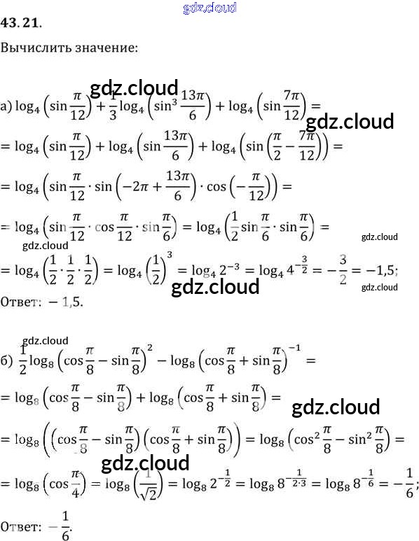 Ответ на задание 43. 21 Задачник Алгебра за 10, 11 (десятый, одиннадцатый) класс Мордкович, Денищева, Корешкова, Мишустина, Семёнов, Тульчинская Базовый уровень 2015 Часть 2