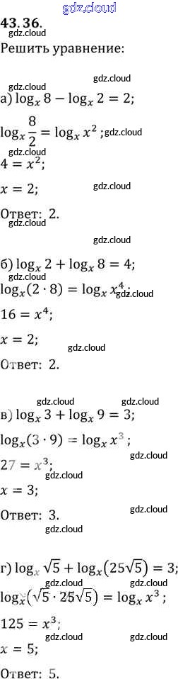 Ответ на задание 43. 36 Задачник Алгебра за 10, 11 (десятый, одиннадцатый) класс Мордкович, Денищева, Корешкова, Мишустина, Семёнов, Тульчинская Базовый уровень 2015 Часть 2