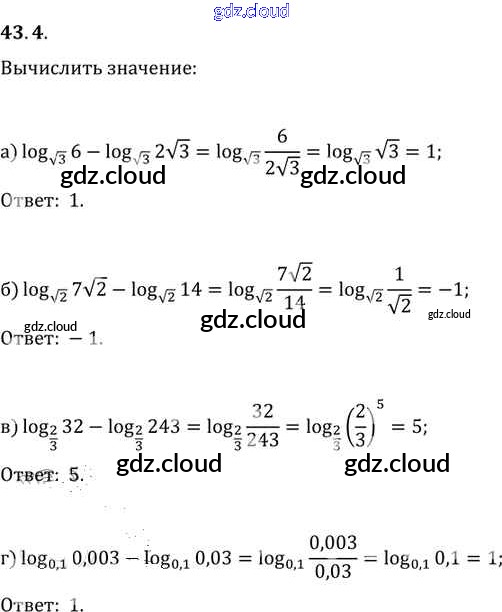 §43. Свойства логарифмов Глава 7 по Алгебре 10, 11 класс Задачник Мордкович Базовый уровень Часть 2 Мнемозина