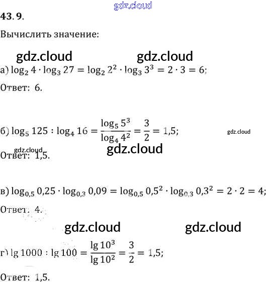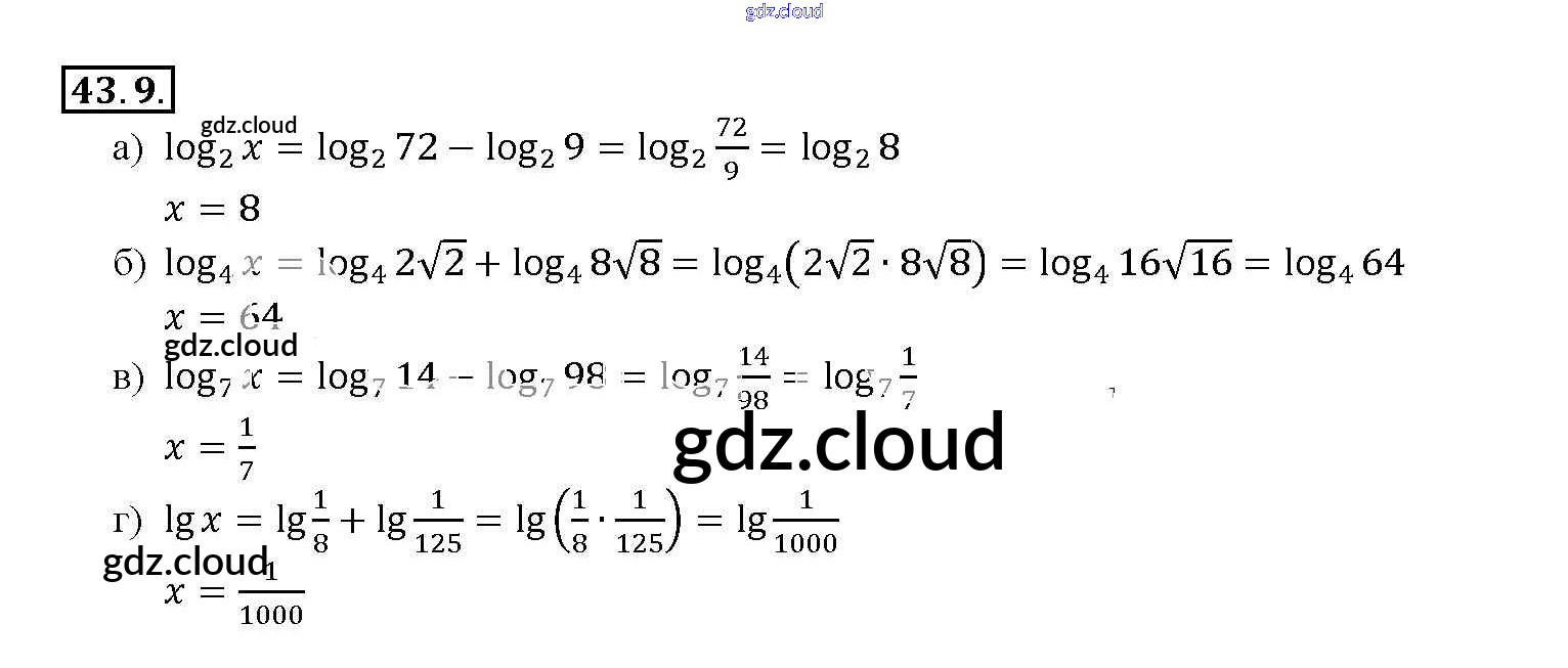 §43. Свойства логарифмов Глава 7 по Алгебре 10, 11 класс Задачник Мордкович Базовый уровень Часть 2 Мнемозина