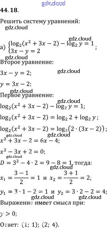 Ответ на задание 44. 18 Задачник Алгебра за 10, 11 (десятый, одиннадцатый) класс Мордкович, Денищева, Корешкова, Мишустина, Семёнов, Тульчинская Базовый уровень 2015 Часть 2