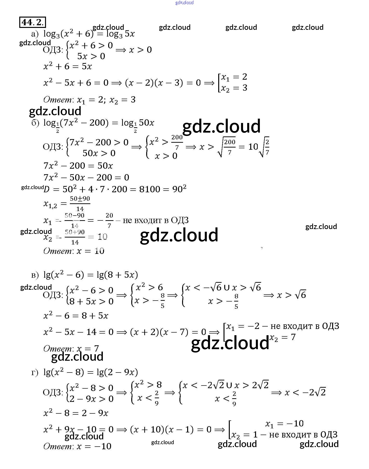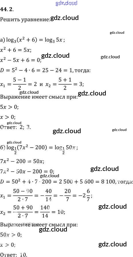 §44. Логарифмические уравнения Глава 7 по Алгебре 10, 11 класс Задачник Мордкович Базовый уровень Часть 2 Мнемозина