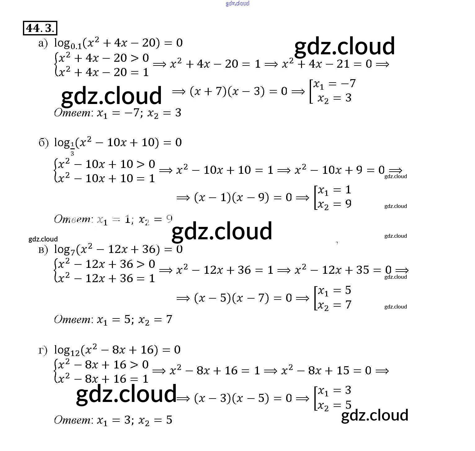 §44. Логарифмические уравнения Глава 7 по Алгебре 10, 11 класс Задачник Мордкович Базовый уровень Часть 2 Мнемозина