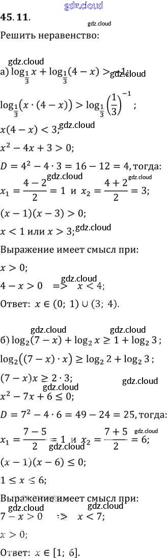 §45. Логарифмические неравенства Глава 7 по Алгебре 10, 11 класс Задачник Мордкович Базовый уровень Часть 2 Мнемозина