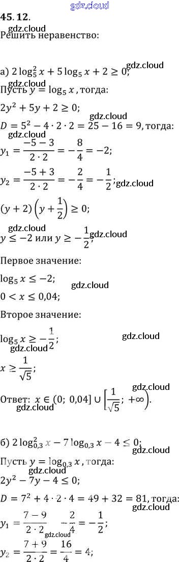 §45. Логарифмические неравенства Глава 7 по Алгебре 10, 11 класс Задачник Мордкович Базовый уровень Часть 2 Мнемозина