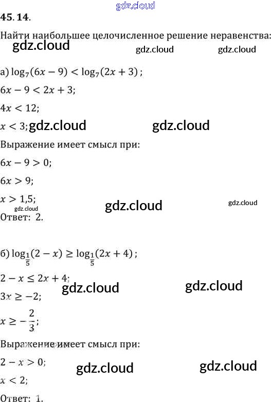 Ответ на задание 45. 14 Задачник Алгебра за 10, 11 (десятый, одиннадцатый) класс Мордкович, Денищева, Корешкова, Мишустина, Семёнов, Тульчинская Базовый уровень 2015 Часть 2