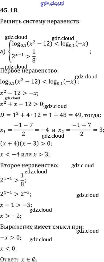 §45. Логарифмические неравенства Глава 7 по Алгебре 10, 11 класс Задачник Мордкович Базовый уровень Часть 2 Мнемозина
