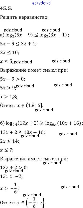 §45. Логарифмические неравенства Глава 7 по Алгебре 10, 11 класс Задачник Мордкович Базовый уровень Часть 2 Мнемозина