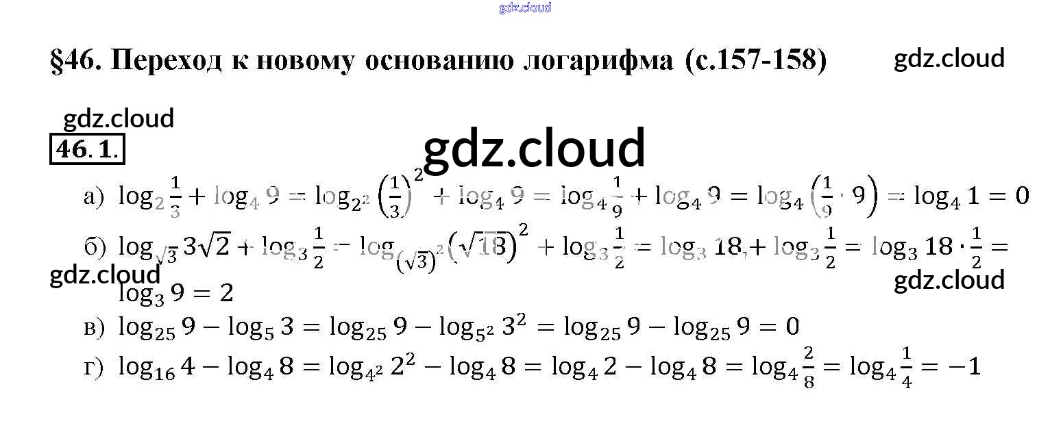 §46. Переход к новому основанию логарифма Глава 7 по Алгебре 10, 11 класс Задачник Мордкович Базовый уровень Часть 2 Мнемозина