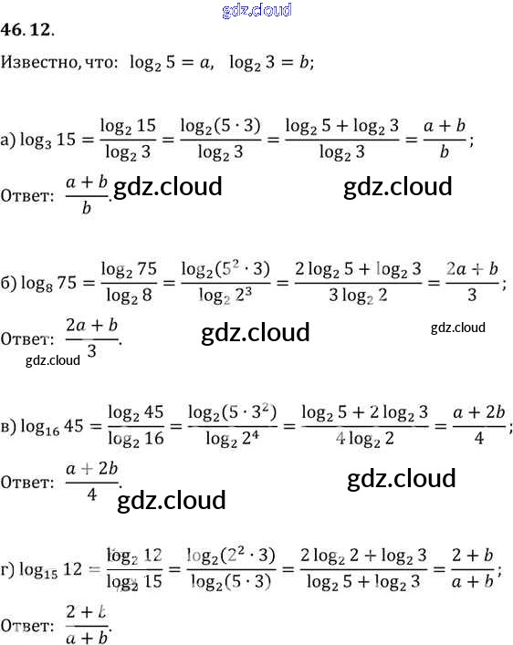 §46. Переход к новому основанию логарифма Глава 7 по Алгебре 10, 11 класс Задачник Мордкович Базовый уровень Часть 2 Мнемозина