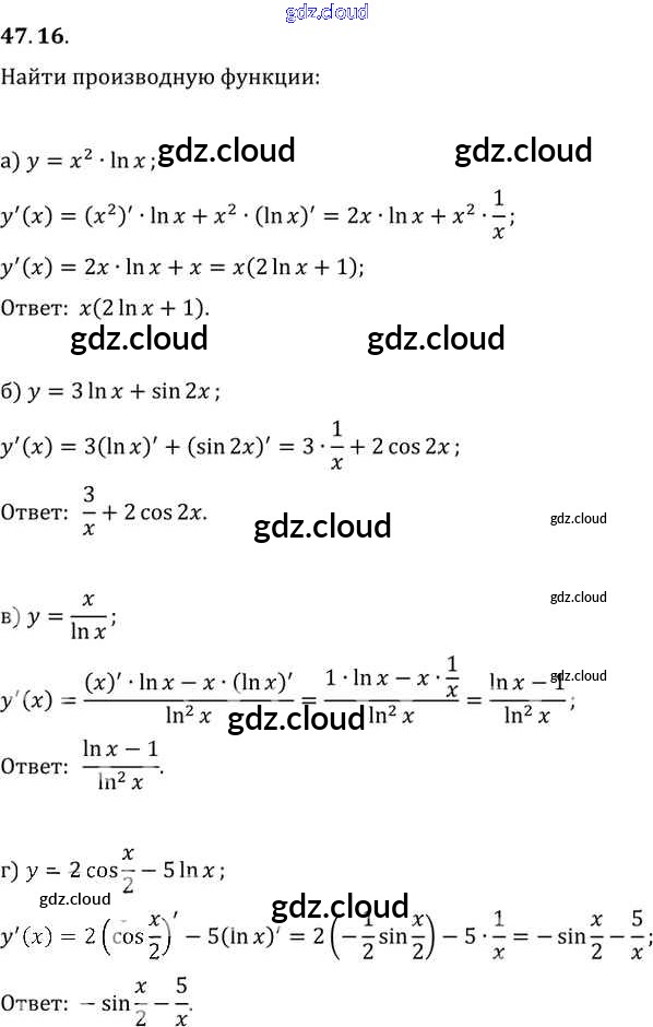 §47. Дифференцирование показательной и логарифмической функций Глава 7 по Алгебре 10, 11 класс Задачник Мордкович Базовый уровень Часть 2 Мнемозина