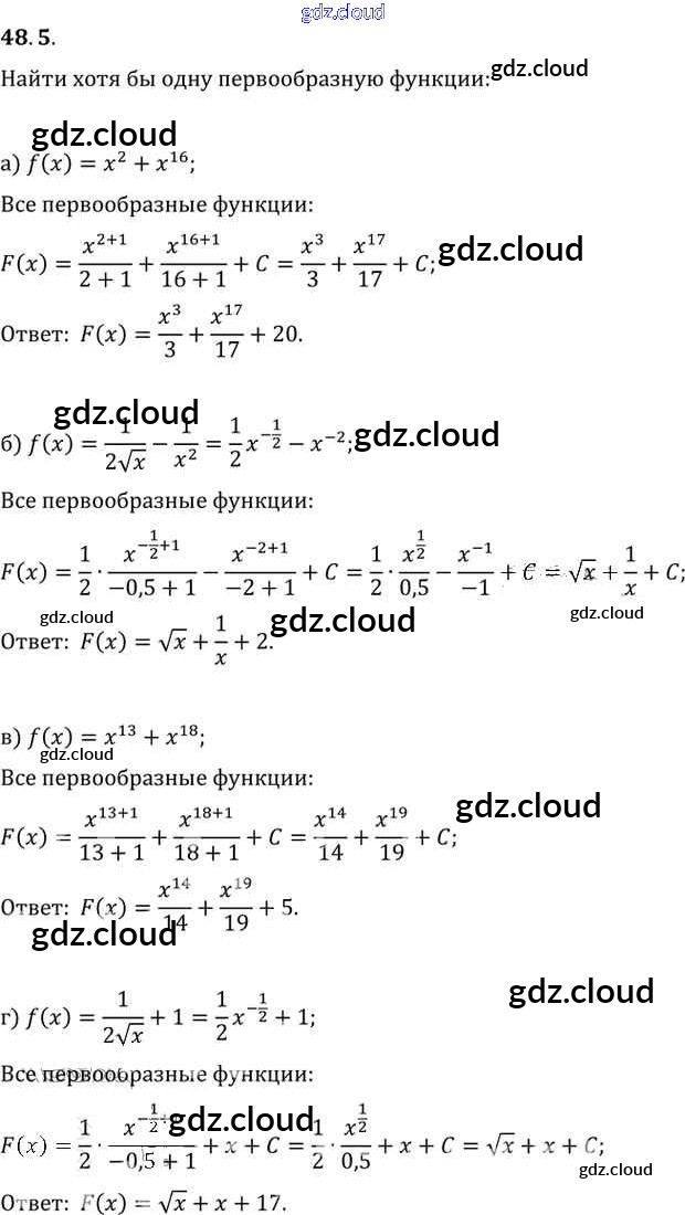 §48. Первообразная Глава 8 по Алгебре 10, 11 класс Задачник Мордкович Базовый уровень Часть 2 Мнемозина