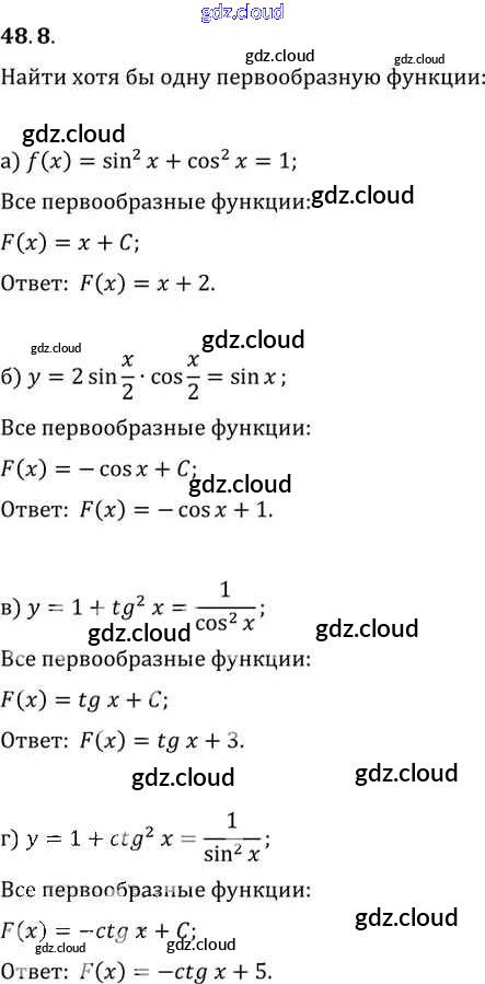 §48. Первообразная Глава 8 по Алгебре 10, 11 класс Задачник Мордкович Базовый уровень Часть 2 Мнемозина