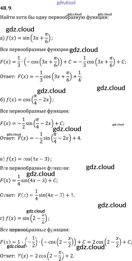 §48. Первообразная Глава 8 по Алгебре 10, 11 класс Задачник Мордкович Базовый уровень Часть 2 Мнемозина