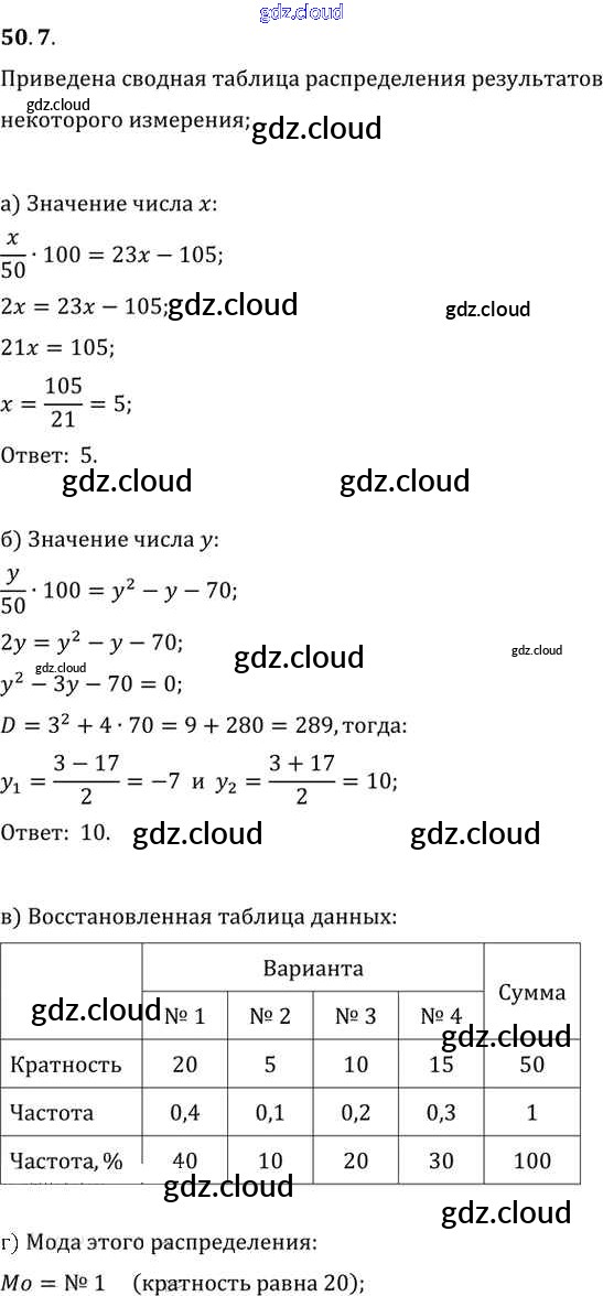 Ответ на задание 50. 7 Задачник Алгебра за 10, 11 (десятый, одиннадцатый) класс Мордкович, Денищева, Корешкова, Мишустина, Семёнов, Тульчинская Базовый уровень 2015 Часть 2