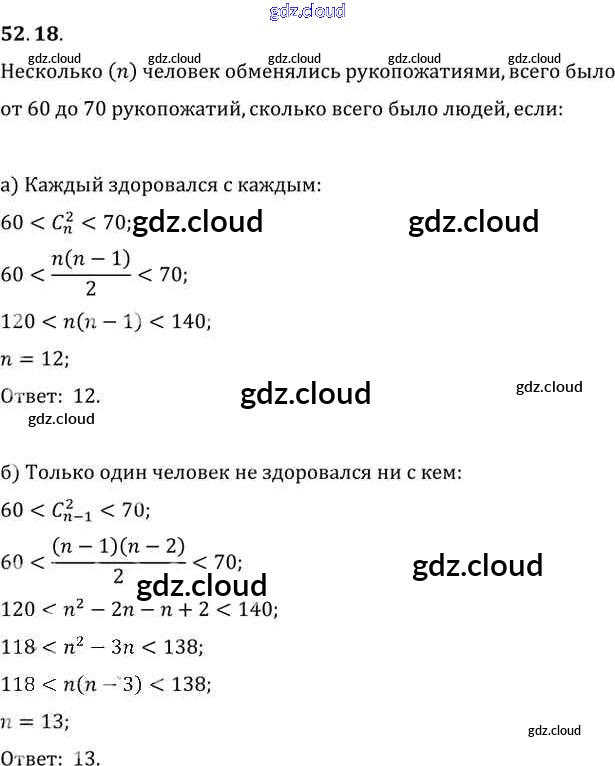 §52. Сочетания и размещения Глава 9 по Алгебре 10, 11 класс Задачник Мордкович Базовый уровень Часть 2 Мнемозина