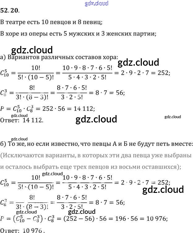 §52. Сочетания и размещения Глава 9 по Алгебре 10, 11 класс Задачник Мордкович Базовый уровень Часть 2 Мнемозина