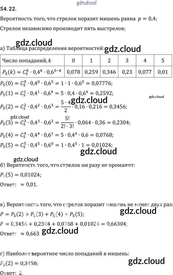 Ответ на задание 54. 22 Задачник Алгебра за 10, 11 (десятый, одиннадцатый) класс Мордкович, Денищева, Корешкова, Мишустина, Семёнов, Тульчинская Базовый уровень 2015 Часть 2