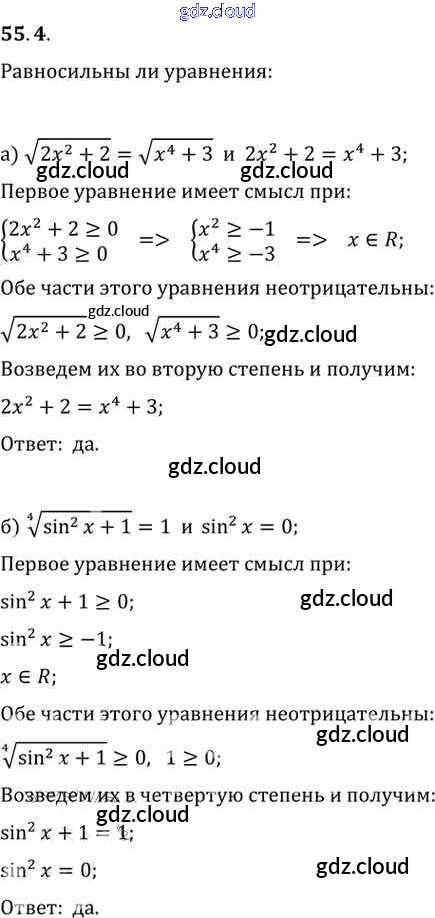 §55. Равносильность уравнений Глава 10 по Алгебре 10, 11 класс Задачник Мордкович Базовый уровень Часть 2 Мнемозина