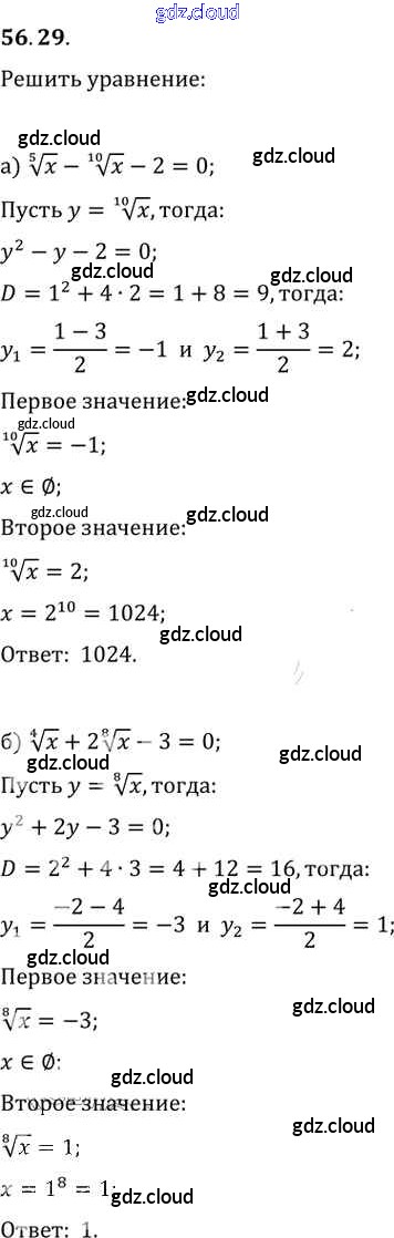 Ответ на задание 56. 29 Задачник Алгебра за 10, 11 (десятый, одиннадцатый) класс Мордкович, Денищева, Корешкова, Мишустина, Семёнов, Тульчинская Базовый уровень 2015 Часть 2