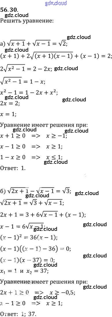 Ответ на задание 56. 30 Задачник Алгебра за 10, 11 (десятый, одиннадцатый) класс Мордкович, Денищева, Корешкова, Мишустина, Семёнов, Тульчинская Базовый уровень 2015 Часть 2